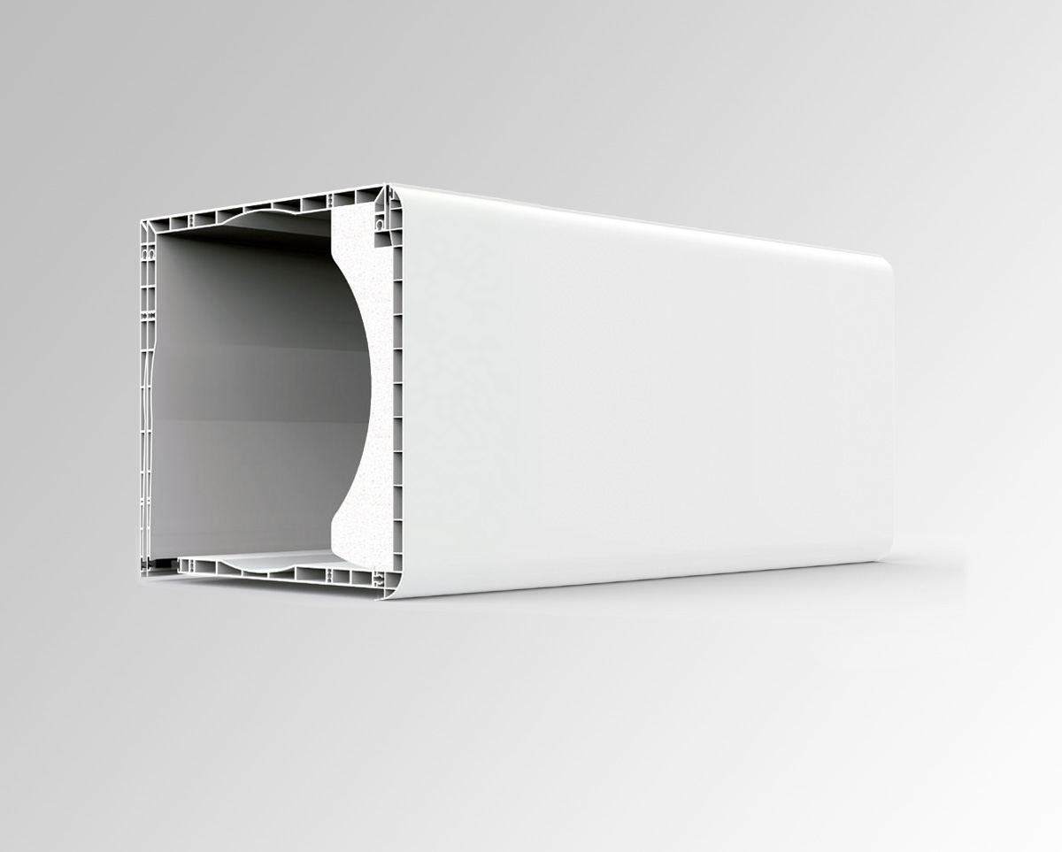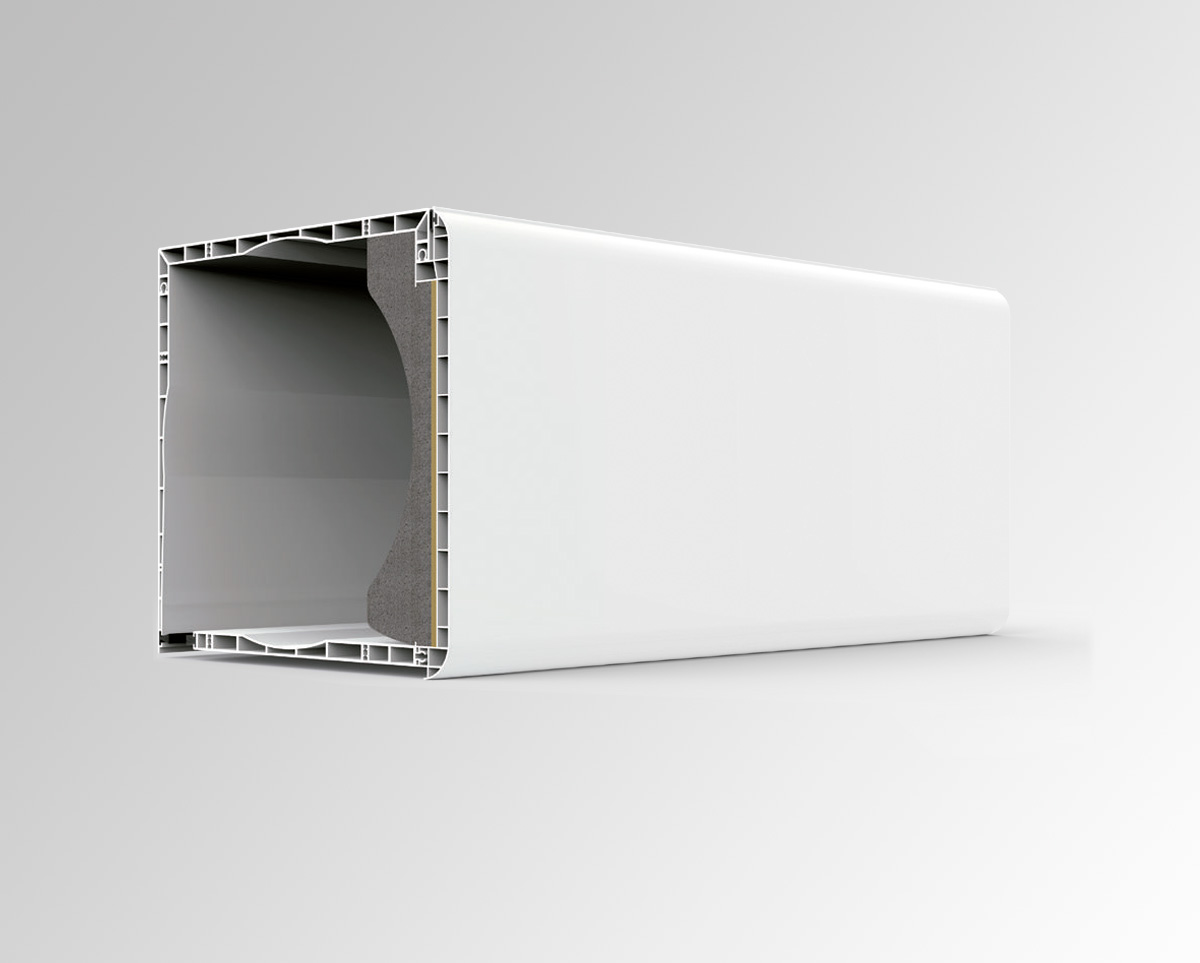 Formado por tapas de PVC extruido de doble tabique, con cámaras intermedias aislantes y diferentes aislantes opcionales que mejoran las prestaciones termoacústicas.
